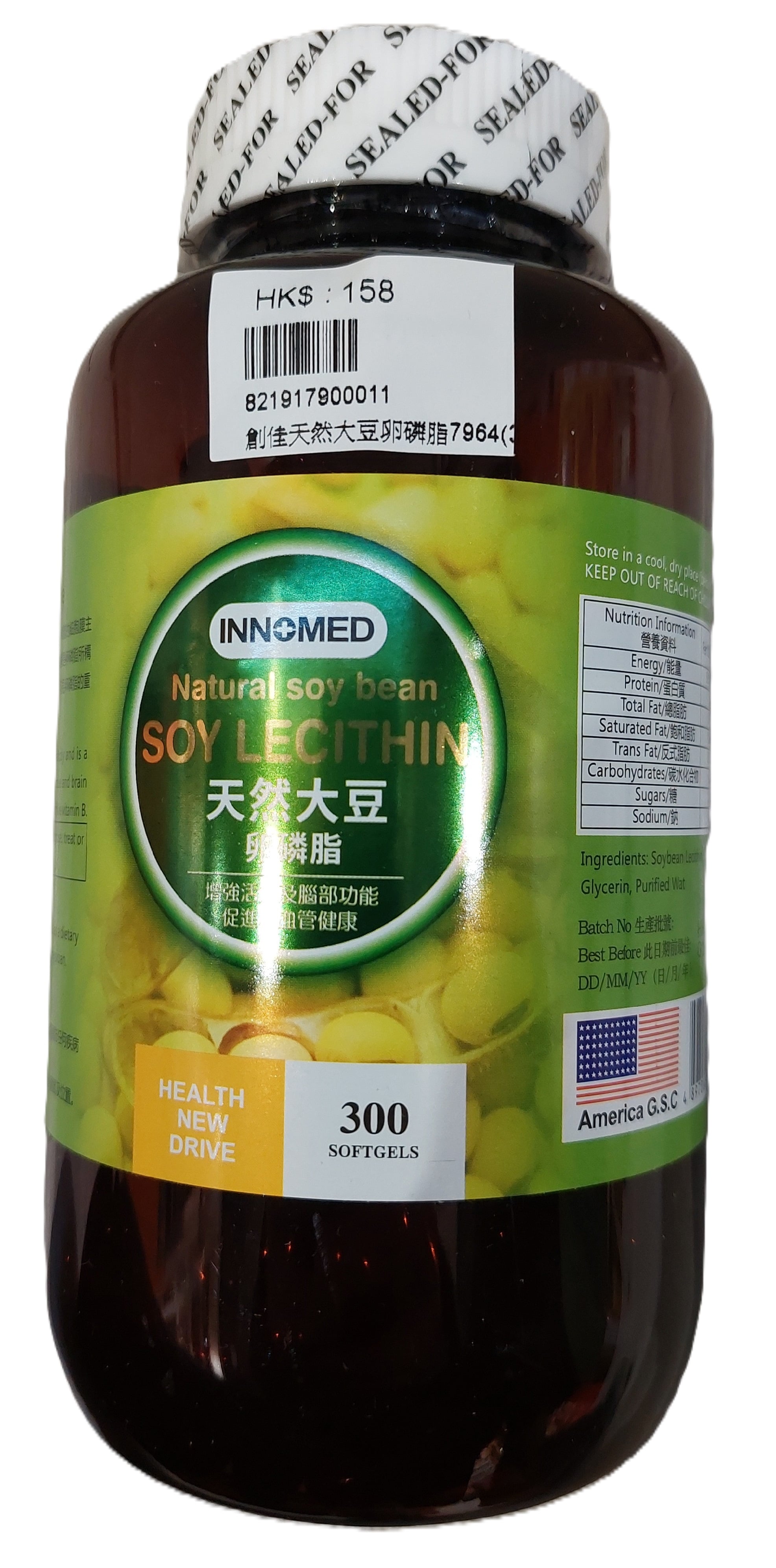 主要成份:天然大豆卵磷脂 建議用法:每日1-2粒 產品規格︰300粒軟膠囊,每粒1200毫克 儲存方法︰放置於陰涼乾爽處以及避免小童觸及位置 此產品沒有根據 «藥劑業及毒藥條例» 或 «中醫藥條例» 註冊。為此產品作出任何聲稱沒有為進行該等註冊而受評核。此產品並不供作診斷﹑治療或預防任何疾病之用。由於原材料採購受季節影響,每批製成品的顏色或有不同,惟絕不影響產品質素及功效,安全食用。