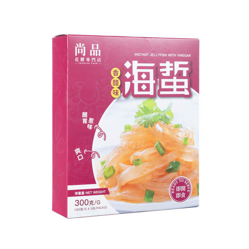 尚品即食海蜇絲(香醋味) 海蜇絲是可食用水母傘蓋的部分,不僅鮮味爽脆,而且營養豐富,含大量人體所需微量元素。尚品海蜇絲香醋味,口感爽脆,味道鮮美。 食用方法: 將海蜇瀝乾水,按個人口味添加調味料,攪拌即可。 *圖片只供參考,因有不同批次一切以實物為準。尚品堅持正品正貨,客人可放心使用。 商品規格 規格 150克 x 2包
