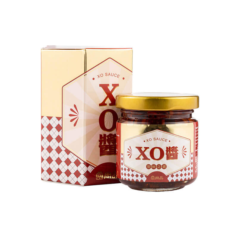 尚品XO醬 新上架!尚品XO醬,香辣惹味、鮮味濃郁,選用上等瑤柱、蝦米等精製而成!XO醬適合伴食中式點心、粉麵、粥品,更可用於烹調肉類、蔬菜、海鮮、炒飯等。 國際食品安全認證: 廠房通過ISO22000、HACCP國際標準食品安全衛生認證,品質信心保證 成份: 干貝,蝦米,魚乾,菜椒,蒜頭,薑,糖,辣椒,植物油(黃豆),鹽,增味劑 惹味食譜: XO醬鮑魚拌麵、XO醬炒露筍鮮蝦帶子、XO醬一口牛柳粒、XO醬拌蒸豆腐 海參食譜: 「涼拌海參」消暑開胃、補血補鈣 *圖片只供參考,因有不同批次一切以實物為準。尚品堅持正品正貨,客人可放心使用。