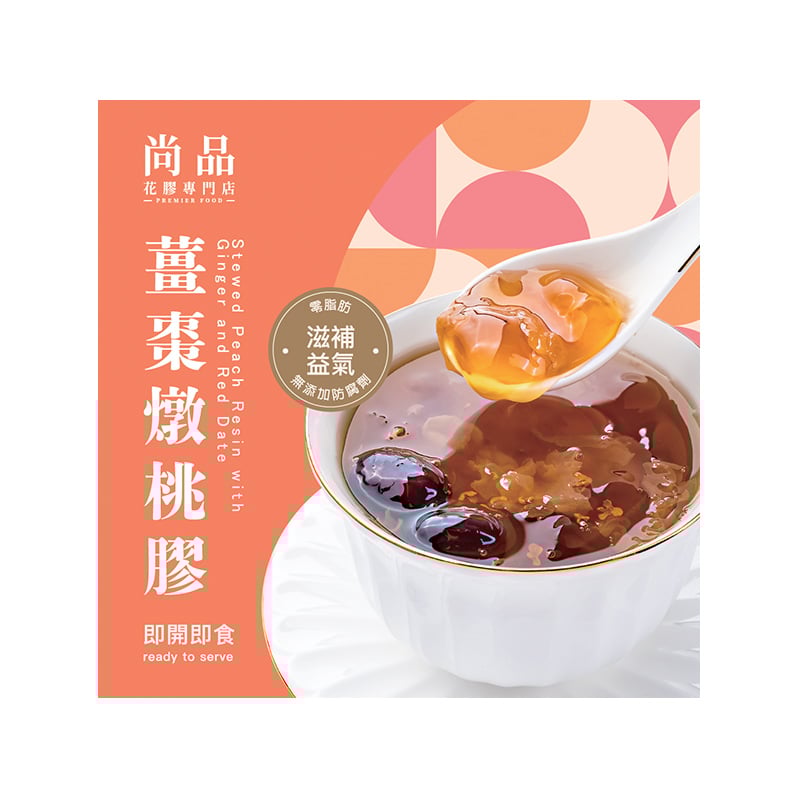 尚品薑棗燉桃膠 內含桃膠、銀耳及紅棗,滋陰潤肺,健脾養血,適合OL的能量下午茶! 功效: 滋陰潤肺,健脾養血 國際食品安全認證: 廠房通過ISO22000、HACCP國際標準食品安全衛生認證,品質信心保證 適合人士: 一般人士均可食用 食用方法: 即開即食味道口感最佳 *圖片只供參考,因有不同批次一切以實物為準。尚品堅持正品正貨,客人可放心使用。 商品規格 規格 228克 產地 中國
