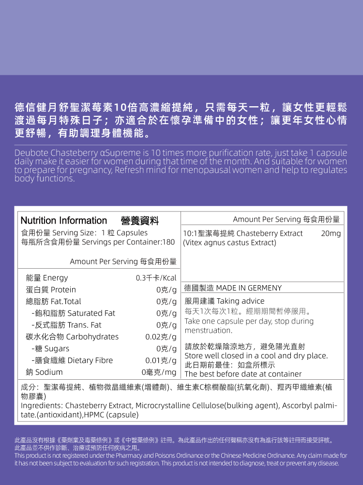 德信健月舒聖潔莓素180粒