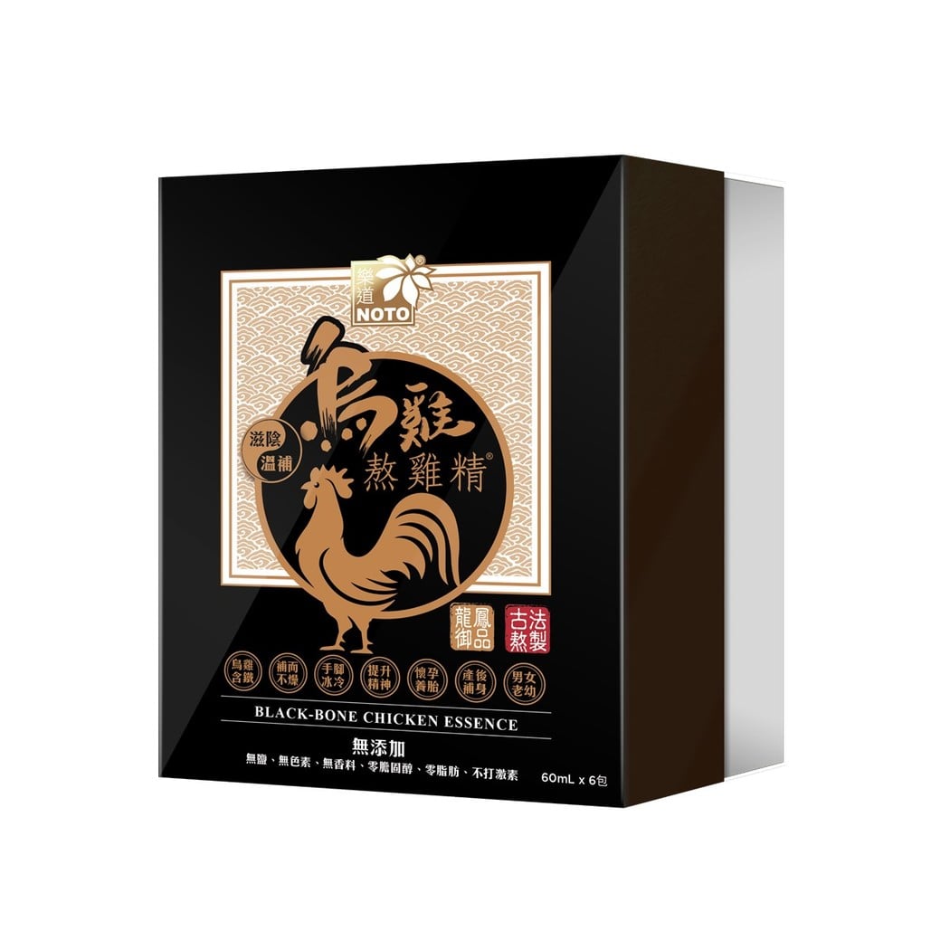 聖藥用料 補血補體虛 烏雞又名烏骨雞,自古以來有極多文獻包括《本草綱目》、《本草拾遺》及《本草經疏》提及烏雞是珍禽中的滋補上品,能滋陰肝腎,常用於補虛勞、強體質,亦是著名的婦科三大聖藥之一烏雞白鳳丸的原料,其營養比市面一般雞種更強,是一等一的藥用食療。 極高營養價值 補而不燥 烏雞一向有低脂及極高營養價值的美譽,其皮膚、肌肉及骨的呈現黑色,肉質結實有彈性但口感細嫩,特別適合產後或手術病後滋陰補身,益氣補血,補充鐵質對女士缺鐵血虧有明顯功效,而且補而不燥。更含有豐富的蛋白質和氨基酸,而脂肪含量為雞種中最低,營養價值奇高,可有助提高人體免疫力,補養五臟,強筋健骨,延緩衰老。 雙雞慢工熬燉濃郁入味 唯獨慢工熬燉才能將雞的微細蛋白分子全部釋出,樂道龍鳯御品烏雞精以現代科學慢工熬燉法,確保以不少於6小時全取雙雞的骨與肉所有營養精華。本產品結合中醫傳統陰陽平衡的最高準則,取烏雞之滋陰特質,配以黃金雞的溫補功效,以黃金比例秘製出補而不燥的滋補上品烏雞精,加上油脂分離技術,入口甘香濃郁不騷,是長期飲用的滋補精華。 主要成分 雞萃取液 (烏雞、黃金雞) 主要功能 孕期養胎 產後補身 提高免疫 補虛強體 滋陰補血 強筋健骨 機能耐勞 延緩衰老 病後恢復 適用人士 準備懷孕、產後、男女士、長者、兒童 使用方法 一 ) 浸泡加熱:整包原封放置於沸水中浸泡5分鐘。 二 ) 煲煮加熱:整包原封放置於煲內並加水加熱至沸騰。 三 ) 微波爐加熱:撕開包裝袋,把烏雞精倒入微波爐盛器內,加熱約30秒至1分鐘。 包裝規格 一盒6包 產地 台灣 了解更多: https://www.notoblackbonechickenessence.com/ 注意事項 本產品取材天然,每批顏色、質感、味道可能略有不同。 出現沉澱物均屬正常現象,並不影響產品質量,請安心食用。 開封後請盡快食用完畢 高血壓、痛風、腎臟病、尿酸高及支鏈有機酸尿症(例如楓糖尿症)患者不建議食用。 2歲以下幼兒不建議食用。 儲存方法 請存放於陰涼及乾燥位置,避免兒童接觸誤服。