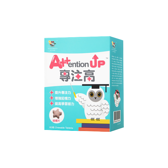 專注高 - 97%提升兒童專注力* - 提高兒童記憶力及學習能力 - 97%增強兒童組織力* - 94%提升兒童耐性* - 91%提升積極正面情緒管理能力* - 紓解兒童情緒及壓力 - 專為兒童體質調配而成 龍骨、牡蠣、小麥、首烏藤、合歡花、甘草、茯苓、人參、碳酸鈣、橙汁粉、維他命B5、維他命D3、果糖 3-12歲的兒童 口服,每日咀嚼2粒 「專注高」主要成分為天然中草藥。除了可直接咀嚼食用外,亦有以下兩個簡易食法,您可以和小孩一起動動手,一同製作美味料理,讓孩子吃得美味,食得健康。 美味飲料 1. 壓碎咀嚼片 2. 拌入橙汁 3. 攪拌 可口早餐 1. 壓碎咀嚼片 2. 倒入麥皮或穀類早餐或夾入餅乾內 注意:切忌將「專注高」咀嚼片放入高溫的食物或熱水中,以免破壞營養。