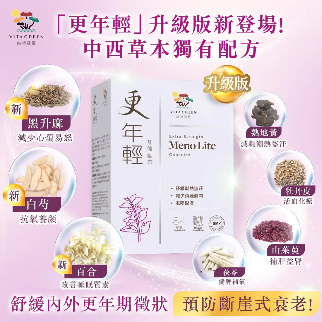 - 中西草本,全面針對潮熱、盜汗、忟憎、難眠 - 3星期舒緩更年期徵狀* - 滋陰補腎兼養顏 - 適合40+女士男士