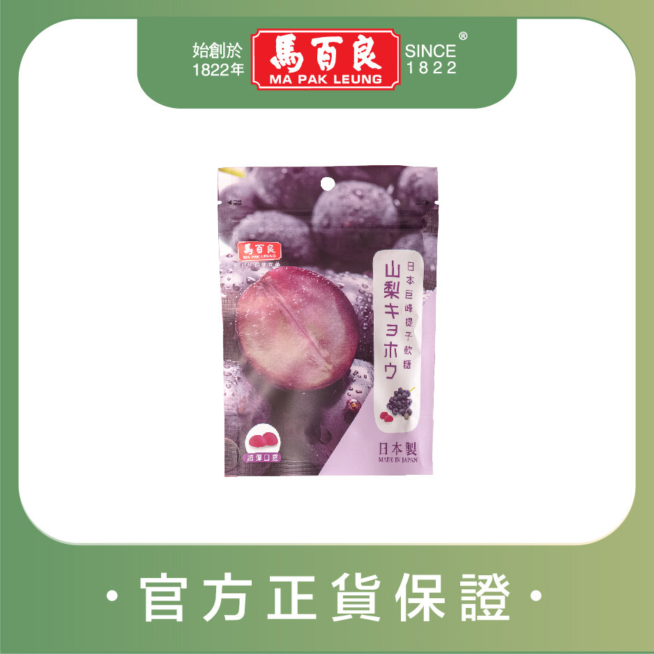 日本巨峰提子軟糖選用日本山梨縣巨峰提子製成,每粒軟糖都充滿著巨峰提子的清香。在中醫角度,提子具有生津止渴、健脾利尿的功效。 功能 生津止渴、健脾利尿。 成份 葡萄糖漿 、糖、明膠、巨峰提子汁、異麥芽低聚糖 、植物油、糯米紙粉、甜味劑 (420)、酸度調節劑 (330)、香料、色素 (164)、上光劑 (903) 。(此產品含有明膠及大豆製品。) 容量 24克。 保存方法 密封防潮,置陰涼乾燥處存放。 產地日本。 放入口中細嚼,多吃幾粒生津止渴、健脾開胃。