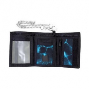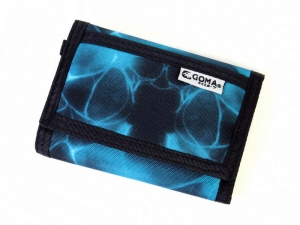 GOMA 三摺有鍊錢包,可放2咭3相片, 18B-32387/B 物料: 尼龍 款式: 湖水藍迷離花