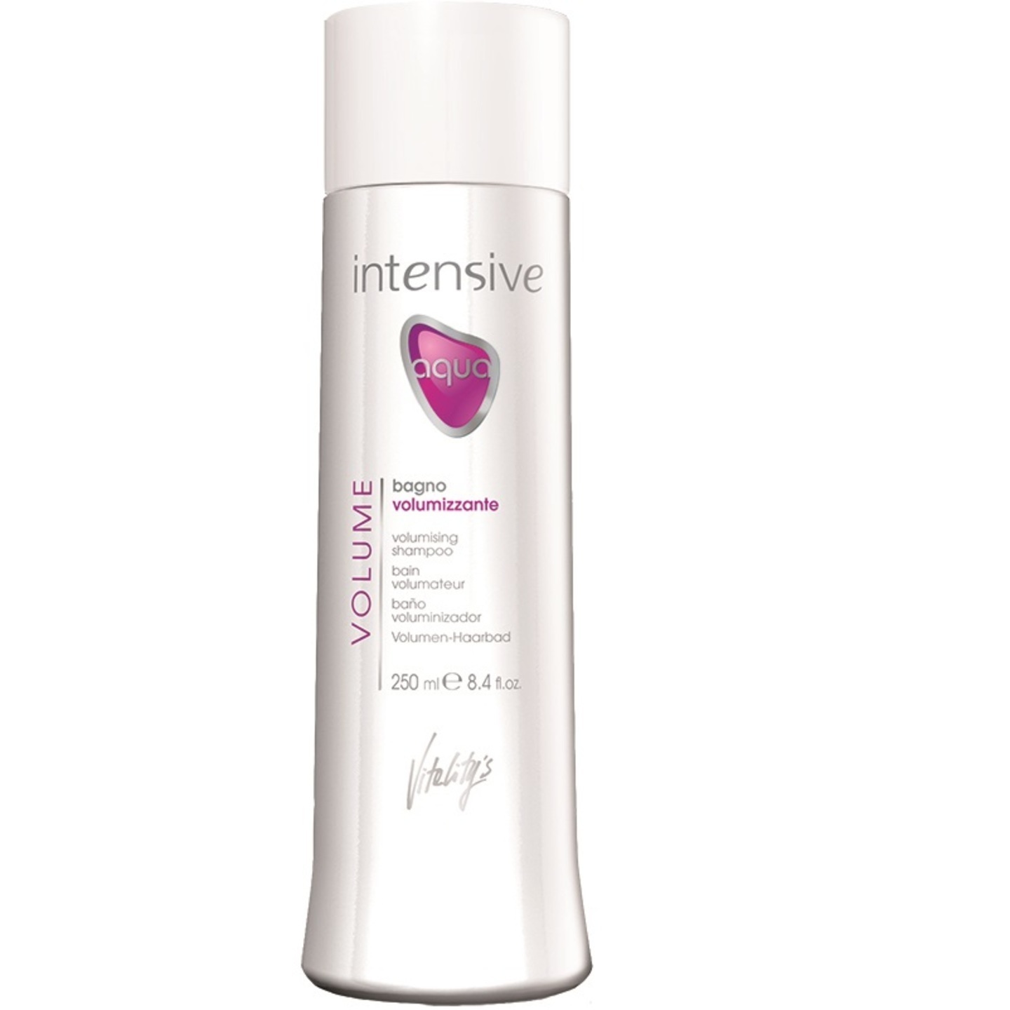 Vitaliy's Intensive Aqua Volume Volumising Shampoo 250ml 有效潔淨頭髮,使用後令頭髮立體及蓬鬆,蘊含玉米蛋白,令頭髮充滿彈性,強而厚實。 功效: 潔淨頭髮,使用後達至豐盈效果,玉米蛋白質使頭髮充滿彈性 成份: 豐盈聚合物-是一種高分子重量的多功能聚合物,使頭髮結構膨脹,即時形造豐盈效果及為頭髮形成保護膜,使頭髮免受風筒的熱力所傷。 陽離子瓜爾豆膠-與頭髮結合的負離子聚合物,修護、軟化頭髮,使頭髮不打結。